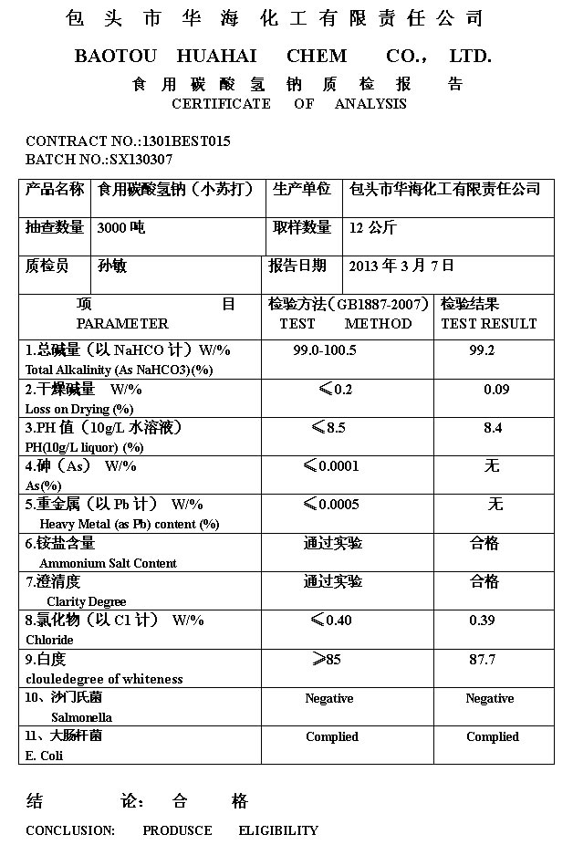FOOD GRADE SODA OF COA