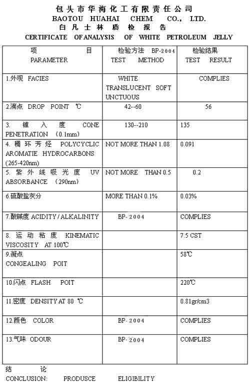 BP-2004白凡士林全质量分析报告WHITE PETROLEUM JELLY